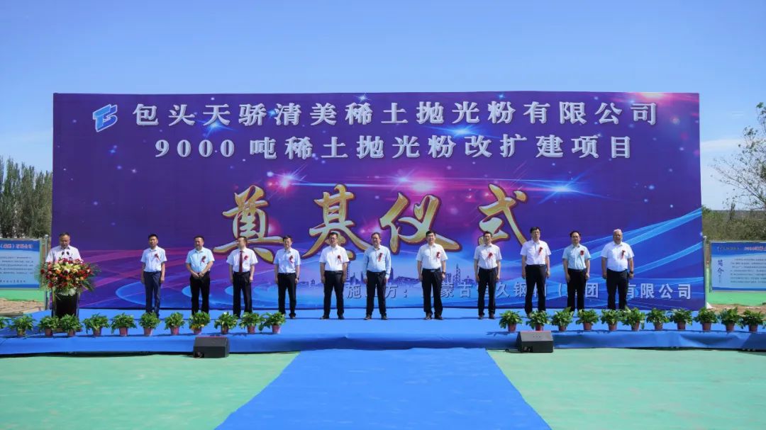 6月6日,【官网】清美公司9000吨稀土抛光粉改扩建项目开工奠基仪式在包头稀土高新区举行。包钢(集团)公司总经理助理兼北方稀土董事长、党委书记章智强出席并宣布项目奠基开工。包头稀土高新区党工委委员、管委会副主任张强,北方稀土总经理、党委副书记瞿业栋,北方稀土、【官网】清美等相关领导出席奠基仪式。